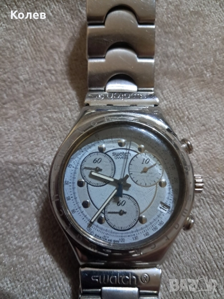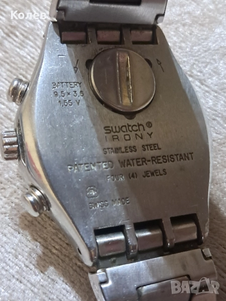 Швейцарски часовник Swatch Irony в отлично визуално и техническо състояние, без драскотини по стъклото и без забележки. Кварцов механизъм. Часовника е с нова батерия.