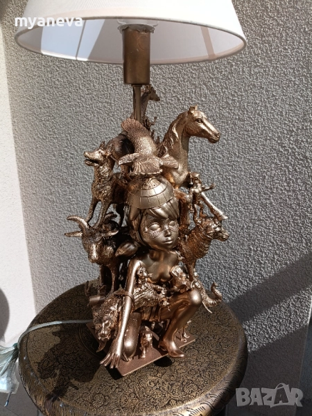 Авторска лампа ​"Единство" , символ на хармонията между човека и животните. Тя е произведение на изкуството, изработено с внимание към детайла и символиката. Размер 60 см. Цена 140 лв.