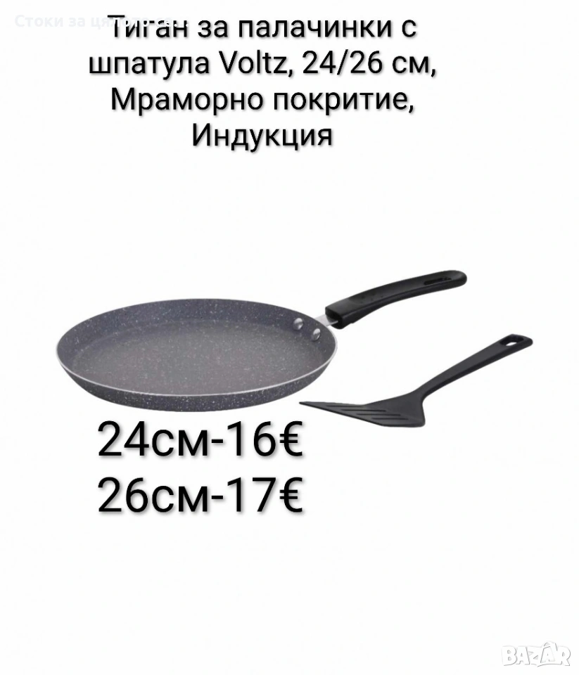 Тиган за палачинки с шпатула Voltz, 24/26 см., Мраморно покритие, Индукция