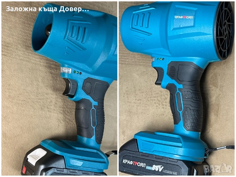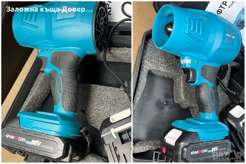 Акумулаторена въздушена турбо духалка пистолет метла - Мощна духалка с в комплекта са включени 2 батерии 36V 8Ah