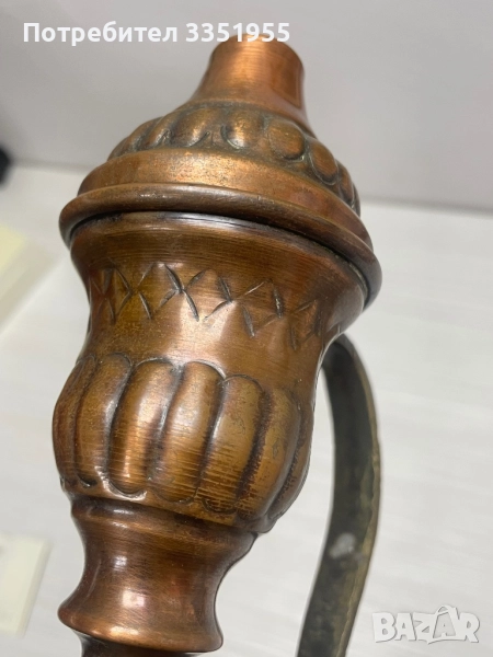 Старинен чайник ръчно изработен от мед с богато украсен дизайн и много силно излъчване, състояние много добро с височина 37 см. Изпращам с Куриер или лично за Пловдив