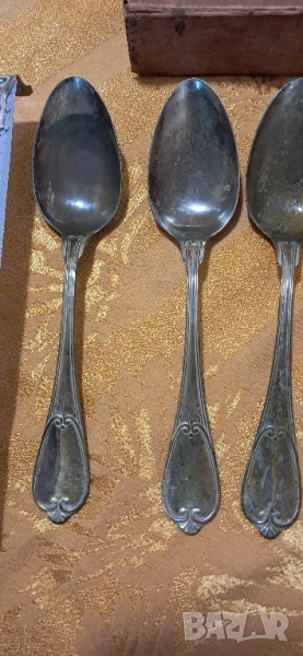Много Стари лъжици на Alpaka,състояние видно на снимките изключително запазени без удари, огънато ,усукано, изкривено и т.н. Комплекта е от 6 бр.Същите са за почистване видно на снимките. Разполагам с 12 бр.цената е 75 лв. която не подлежи на коментар.