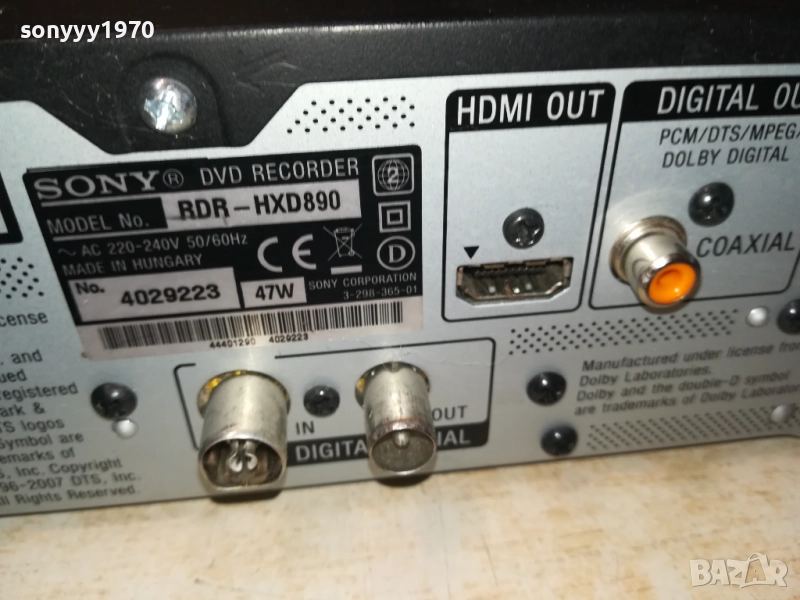 MODEL RDR-HXD890 RECORDER-НОВ ВНОС РАБОТИ И НА ХАРД И НА ДИСК-КРАЙНИ ЦЕНИ.ПАЗАРЛЪЦИ НЕ! пращаме само с еконт с преглед и тест след превод на капаро за куриерската услуга поради зачестили некоректни потребители-поръчки само тук в сайта! по телефона и със смс не! крайни цени! бартери не правиме! ПАРИ НЕ ВРЪЩАМЕ! всеки ден нови неща-още 2-3 наши обяви тук