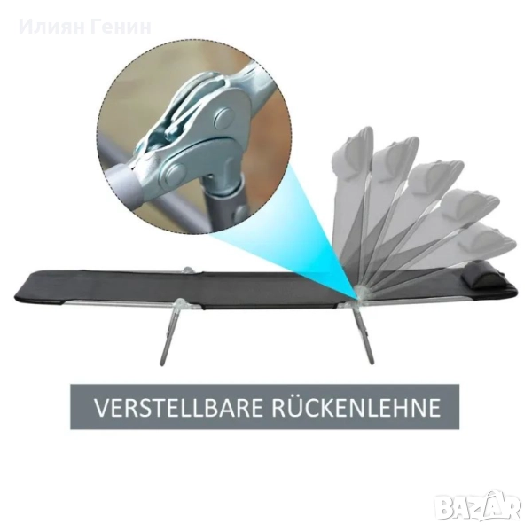 Сгъваем шезлонг Outsunny с облегалка за глава, регулируем шезлонг с 5 позиции, къмпинг шезлонг, товароносимост до 120 кг - 80.00лв.