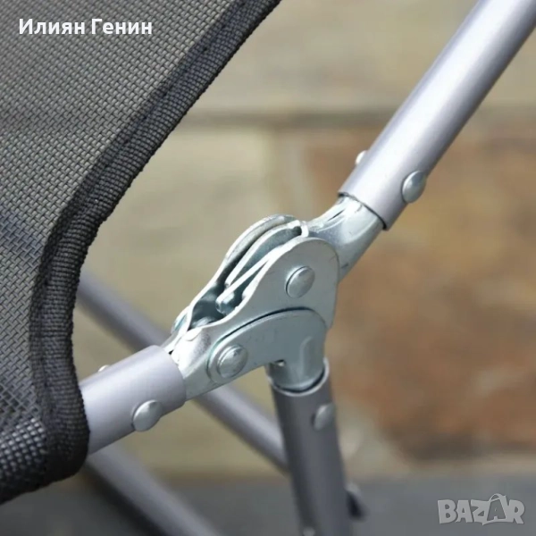 Облегалката се регулира от 90° до 180°. Лесно се сгъва, за да се спести място.