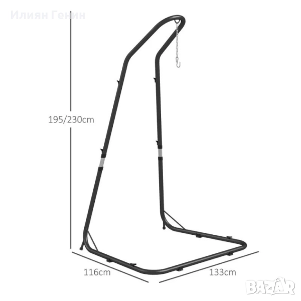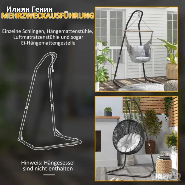 Рамка за стойка за висящ стол Outsunny за висящ стол, 133 см x 116 см x 195/230 см, черна - 150.00лв.