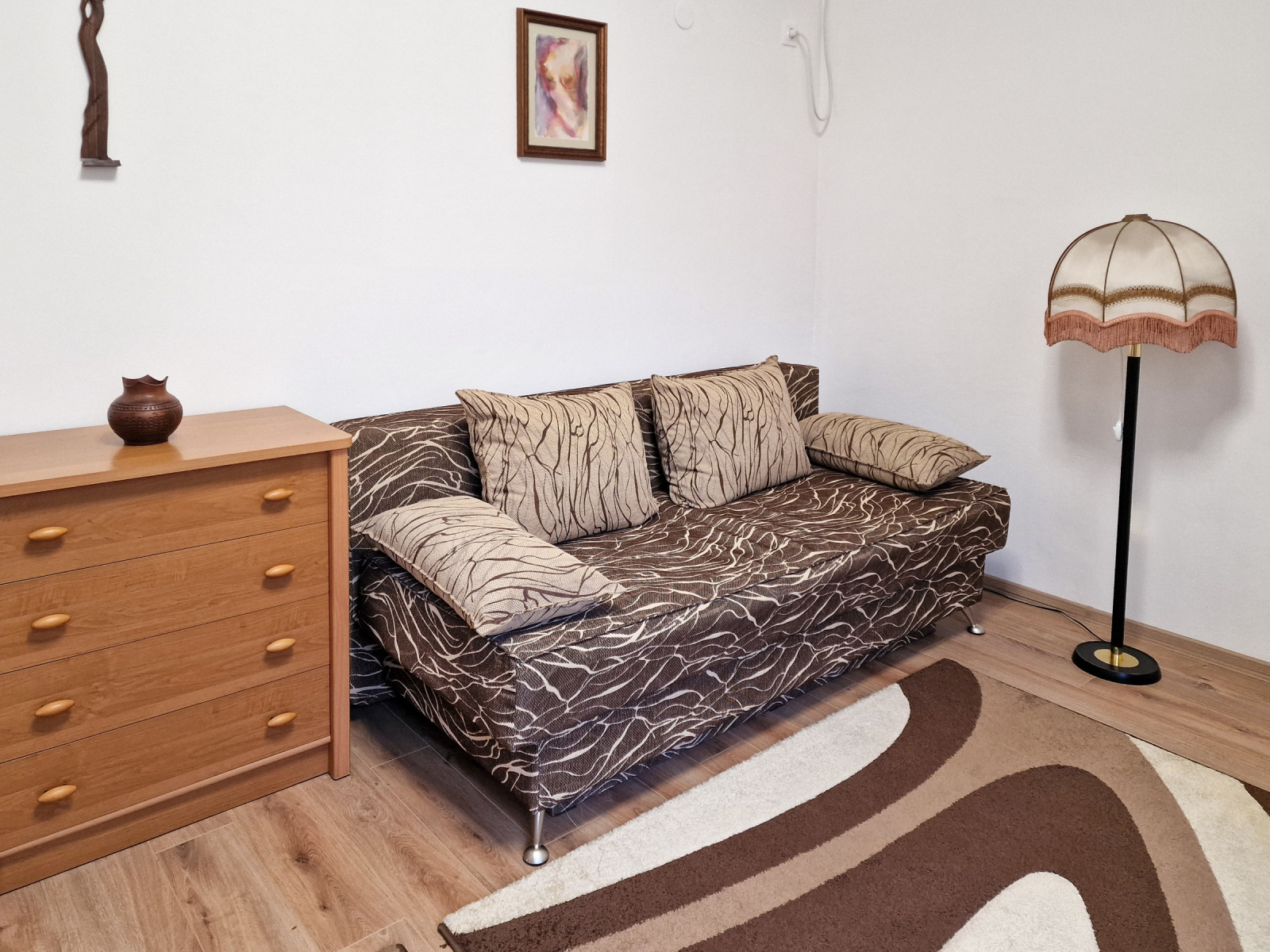 - Втора самостоятелна стая с диван, фотьойли, холна масичка, скрин и лампион, подходяща за кабинет, втора спалня или стая за гости.