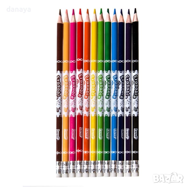 Комплект изтриваеми цветни моливи с гума Lared – практично решение за училище, рисуване и оцветяване. Всеки молив е снабден с гума в края, която позволява лесно коригиране на грешки. Ярките и наситени цветове правят рисунките по-живи и интересни, а удобната форма осигурява комфорт при писане и рисуване.
