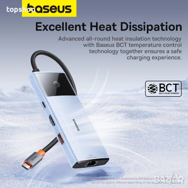 Baseus Metal Gleam Series II е мощен хъб, чрез който можете не само да показвате документи на проектор, да прехвърляте данни със скорост 10 Gbps, да слушате музика, но и да зареждате телефона или лаптопа си с мощност до 100 W. Усъвършенстваната BCT (Baseus Cooling Technology) гарантира, че устройството е добре охладено и зареждането протича безопасно. Портовете USB-C и USB-A са адаптирани към технологията USB3.2 Gen 2, която позволява пренос на данни с висока скорост. Освен това, използването на свързаност през хъба намалява използването на 2.4G честотна лента, която може да бъде прекъсната, когато много устройства я използват. Кабелната свързаност през хъба гарантира, че връзката и предаването са стабилни.