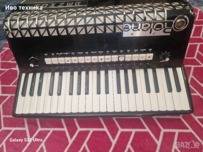 🎶 Продава се Hohner Electronium N 🎶 Изключително рядък електронен акордеон от легендарната компания Hohner – модел Electronium N. Създаден през 50-те години (първо издание Electronium A, 1952 г.), този екземпляр е от 60-те и е в почти перфектно състояние! ✨ Отличителни характеристики: Красив и изискан ретро дизайн Без басови бутони – свири единични ноти с дясната ръка 16 гласа, имитиращи духови и струнни инструменти: флейта, обой, английски рог, кларинет, фагот, саксофон, рог,