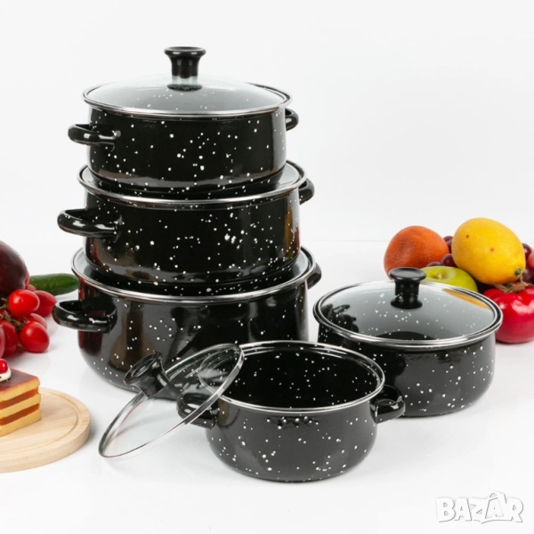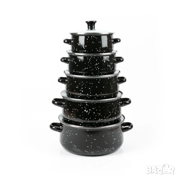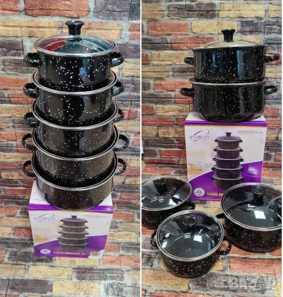 Комплектът включва тенджери с размери 16 см., 18 см., 20 см., 22 см. и 24 см., което ви дава възможност да изберете подходящия съд за всяко ястие. Тези тенджери могат да се използват на газови, електрически, керамични и индукционни котлони. Изработени от висококачествени материали, те са устойчиви на надрасквания и износване, осигурявайки дълготрайна употреба.