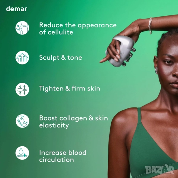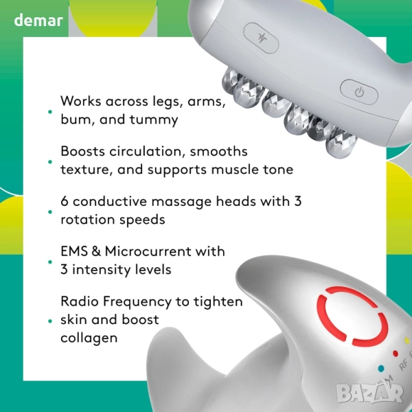 Diablo Pro е безжично устройство за скулптуриране на цяло тяло, което комбинира микроток/EMS, радиочестота и масажна технология за стягане, укрепване и изглаждане на кожата. Разполага с шест проводими масажни глави с три скорости на въртене, за да подобри кръвообращението, да усъвършенства текстурата и да контурира зони като крака, ръце, дупе и корем. С три нива на интензивност, то позволява персонализирани процедури, докато радиочестотата стимулира колагена и еластичността за по-стегнато усещане. Компактно и лесно за употреба само за 10 минути на ден, то осигурява професионални резултати у дома, предназначено да енергизира и подхранва кожата по естествен път.