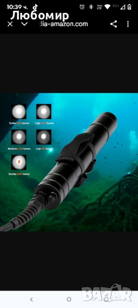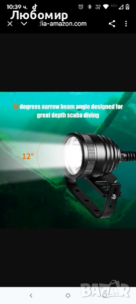 КАБЕЛ 116 СМ И РЕГУЛИРУЕМА СКОБА Контейнерът за батерията е отделен от светлината, можете да прикрепите кутията с батерията към тялото си и просто да държите малката глава на светлината, когато се гмуркате с нея. Държачът може да се регулира между 3-6 см, за да пасне на ръцете