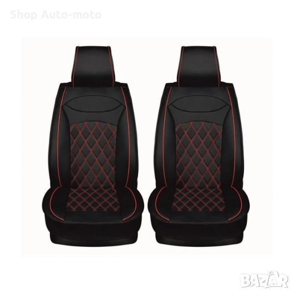 Универсални автомобилни калъфи за предни седалки от еко кожа – черни с червен кант, комплект 2 бр.