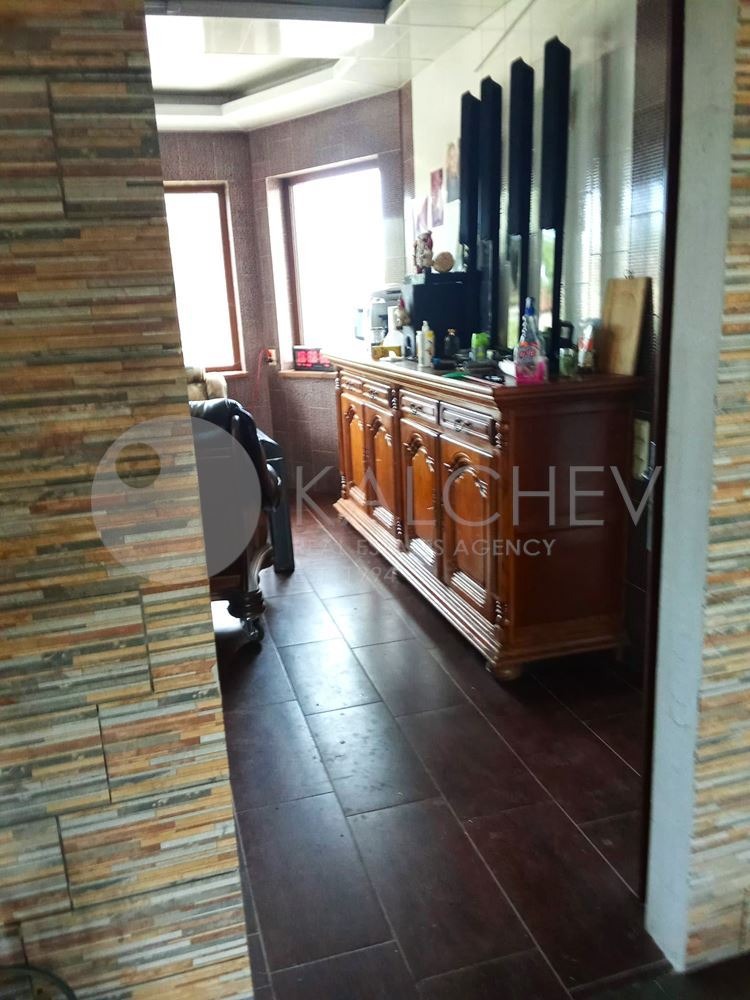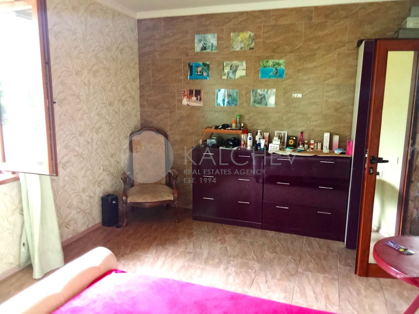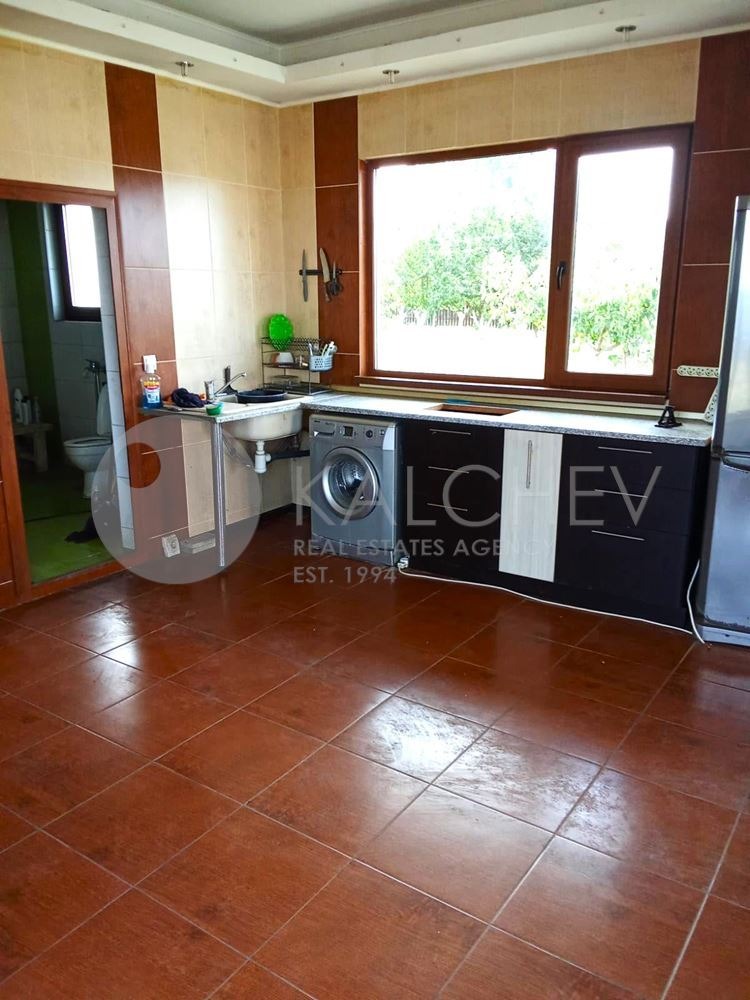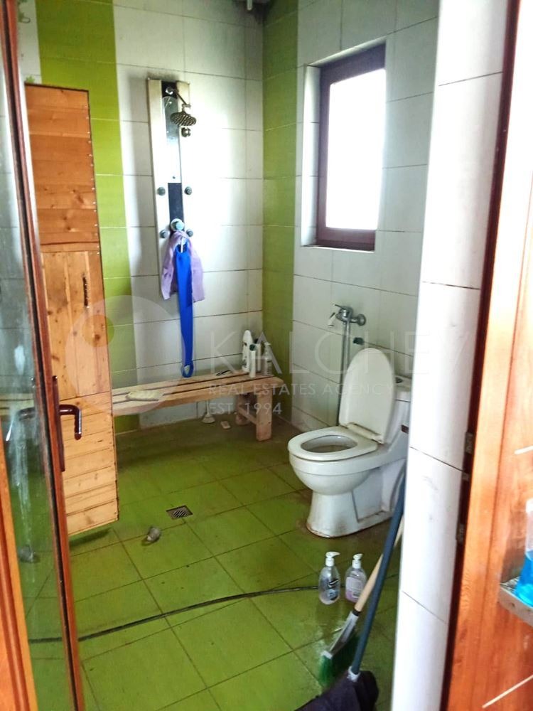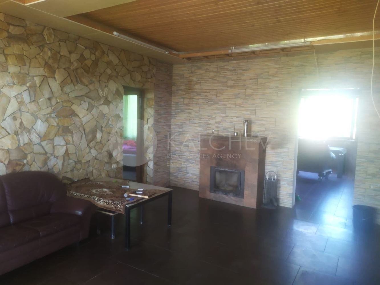 Първи етаж дневна (30 кв.м), отделна кухня, хол, спалня, фитнес зала, баня с тоалетна (16 кв.м) не напълно оборудвана. Във всекидневната има камина.