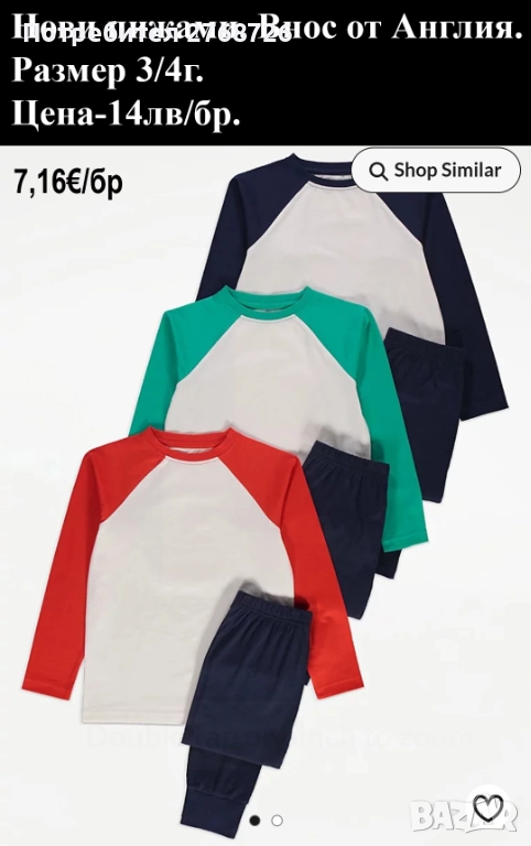 Нови пижами за момчета, внос от Англия. ЦЕНИ И РАЗМЕРИ В ГОРНАТА ЧЕРНА ЛЕНТА