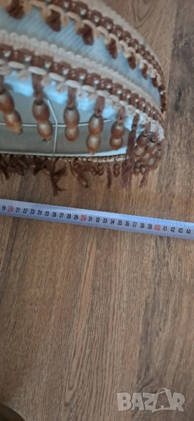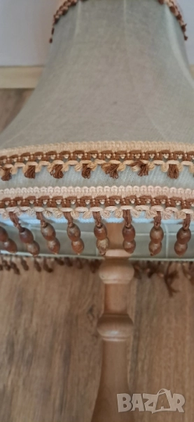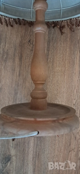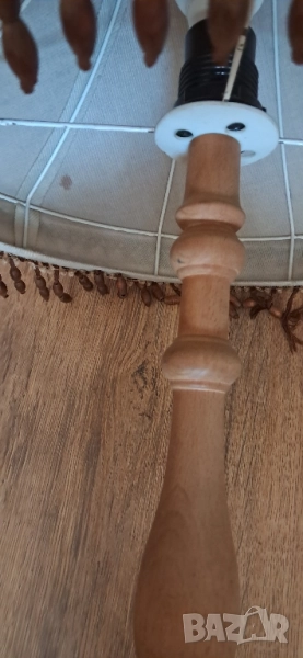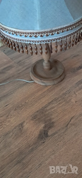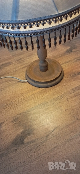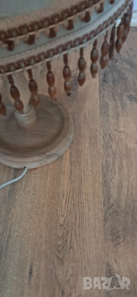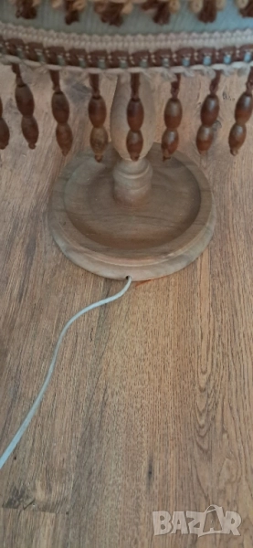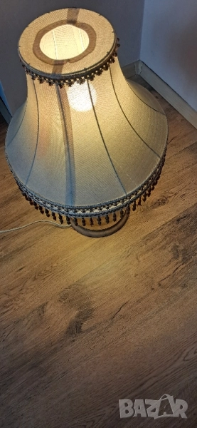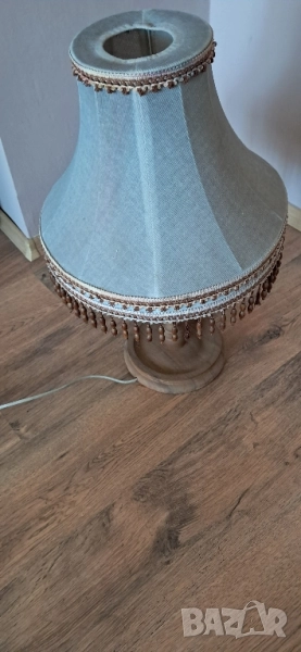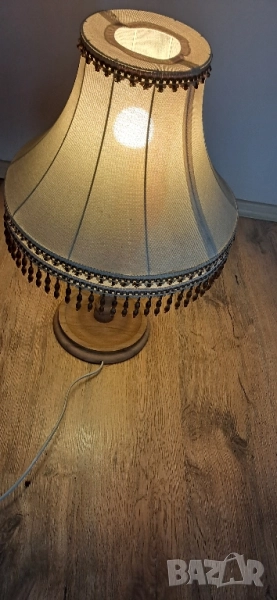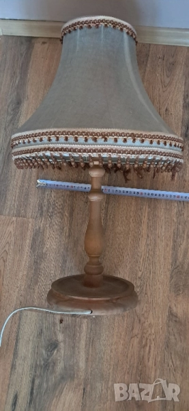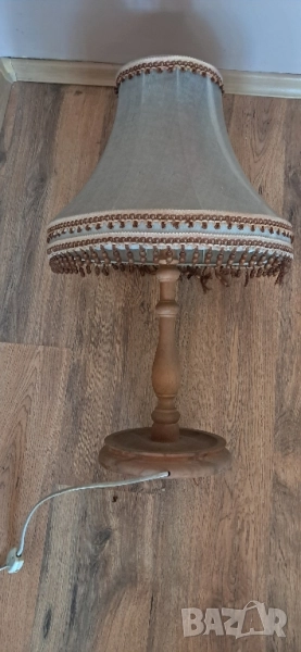 Стара настолна много красива нощна лампа, състояние видно на снимките изключително запазена, стойката е от масивно дърво без пукното нацепено обелено т.н.същата работи .височина 65см.абажур в широката част 45 см.стойка -25 см.произход Зап.Европа.Цената е без коментар