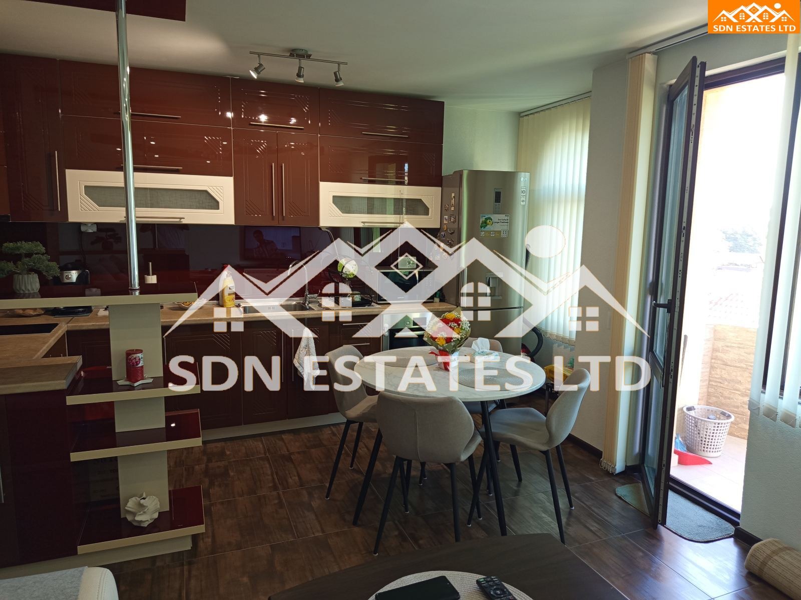Имоти Казанлък SDN Estates LTD предлага за продажба напълно обзаведен апартамент с една спалня, разположен в новопостроена сграда в самия център на гр. Казанлък. Имотът се намира на изключително комуникативно място в непосредствена близост до пешеходната зона, магазини, ресторанти, културни забележителности и административни сгради. Площта на имотът е 75 кв.м. и има следното разпределение: просторна всекидневна с кухня и трапезария, една спалня, баня с тоалетна и тераса.