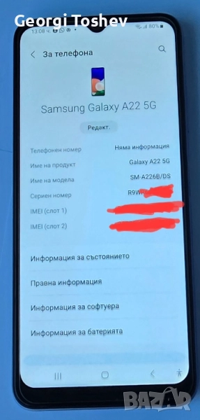 Samsung Galaxy A22 5G & Micro SD карта 128 Gb,6Gb Ram → Обява 51730960