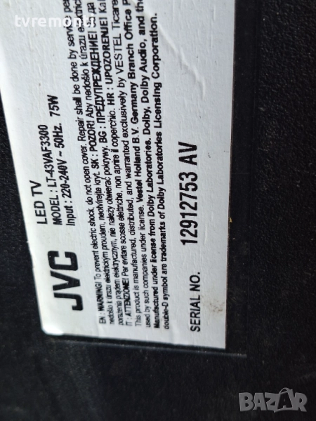 TCON 47-6021881 HV430FHB_F91_V00 за 43-инчов телевизор JVC LT-43VAF3300, с дисплей VES430UNFH-L3-Z01 → Обява 51731710