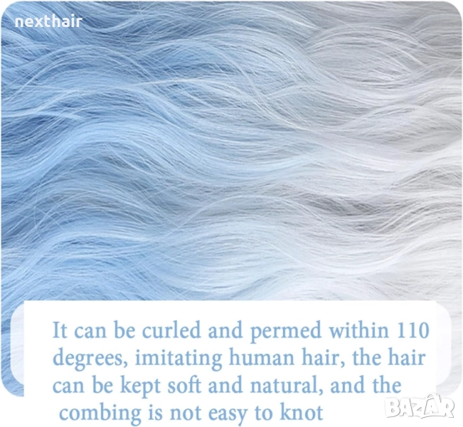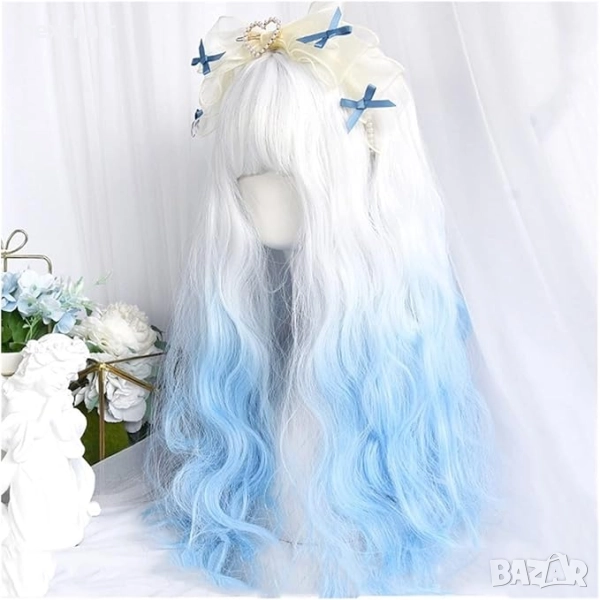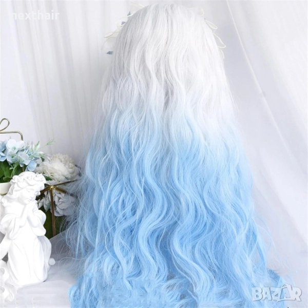 Чуплива аниме омбре перука бяла / синя → Обява 51731733