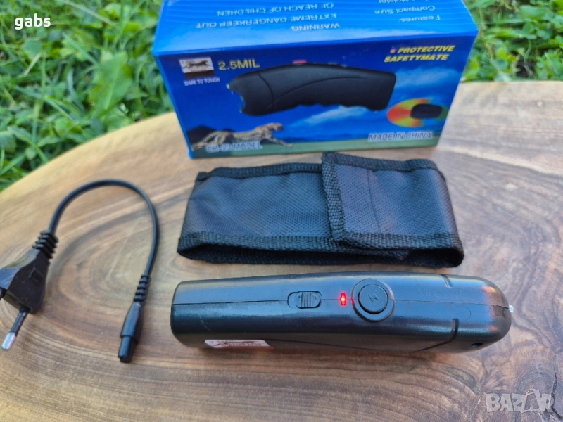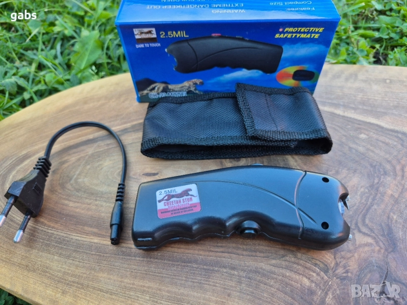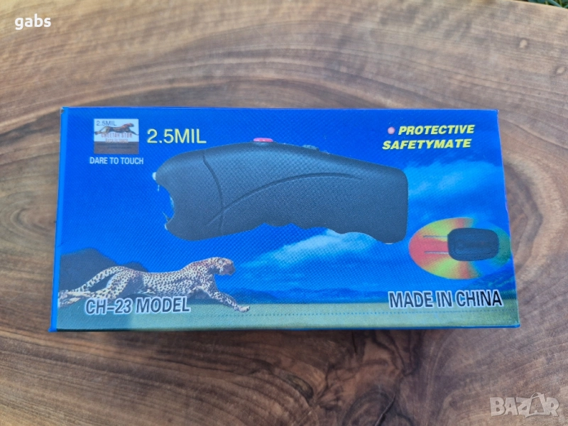 електрошок CH-23 с 2.5 милиона волта. Въпреки малкия си размер, той е много силен и може да повали човек или голямо животно. Този пистолет работи с вътрешна акумулаторна батерия. Има предпазен бутон за включване и LED светлина, която може да се използва като фенерче. Поставен е в удобен черен калъф с примка за колан и е лесен за носене в джоба. Stun Gun CH-23 е компактен и дискретен.