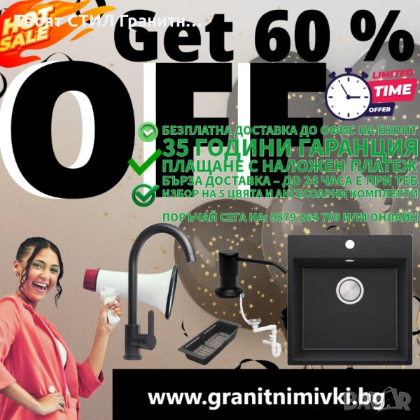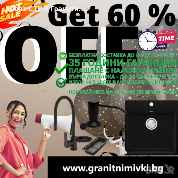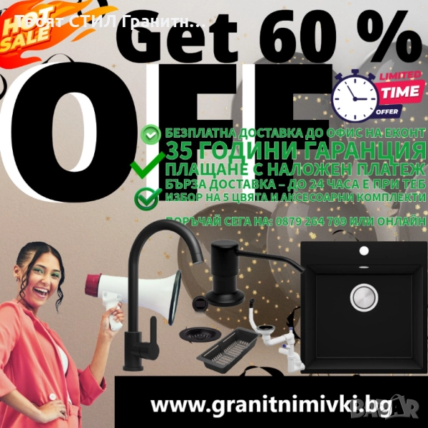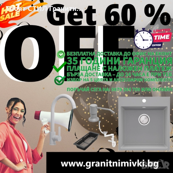 Знаете ли, че сега може да вземете пълен комплект за кухнята – мивка + смесител + сифон + дозатор + кошница само за промоционална цена -60% от редовната! 🎉