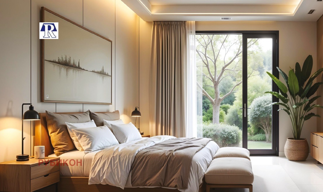 Разпределението на апартамента е както следва: просторна дневна с кухненски бокс 20.6 кв.м, спалня 14.5кв.м, антре 7.9кв.м, баня с тоалетна, тераса 3.3кв.м. Застроена площ 61.02кв.м. Обща площ 71.84кв.м. Към жилището имате възможност да закупите и паркомясто, или гараж, които се заплащат допълнително. Агенция 'Рубикон' може да ви съдейства безплатно за финансиране с кредит на вашия нов дом. За повече въпроси и информация, моля позвънете на посочения телефон.
