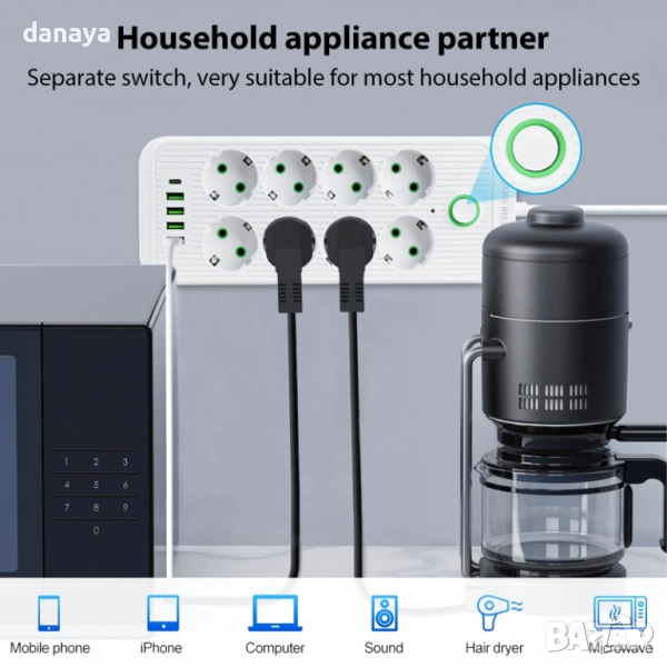 Мултиразклонител с 8 гнезда, 4 USB порта и Type-C е надежден избор за всеки дом или офис, когато се нуждаете от повече места за свързване на електроуреди и мобилни устройства. Този практичен разпределител на ток съчетава в себе си функционалността на контактен блок и захранваща лента, като ви позволява да включвате едновременно лаптопи, компютри, телевизори, конзоли, зарядни устройства, кухненска техника и други електронни уреди.