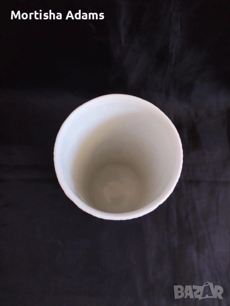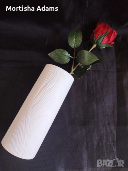 ⚜️ Красива и стилна матово бяла ваза, "бисквитен" порцелан, височина 15,5см., диаметър на отвор и основа 6см., отлично състояние. Произведена е през 60-те години на миналия век.