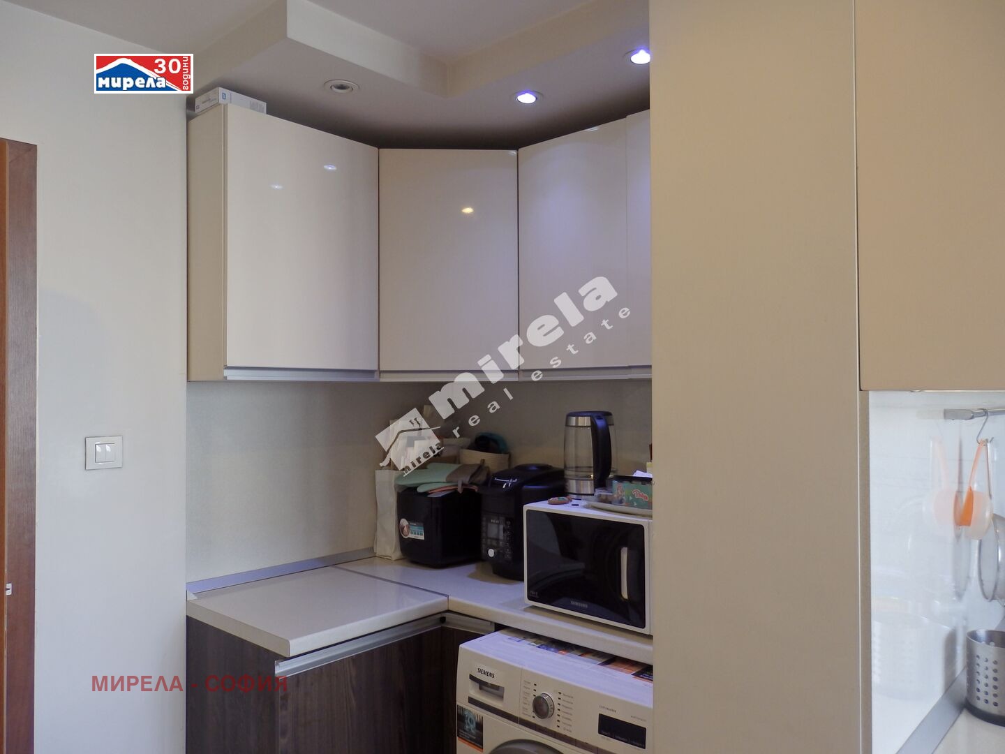 Разпределението включва антре, голяма кухня с трапезария с усвоен балкон пред нея, две непреходни спални, просторен хол със слънчев балкон и изглед към Витоша, трета спалня с достъп през хола, баня с тоалетна, втора тоалетна и голям килер.