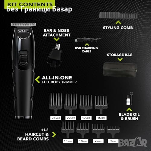 Нов All in One Тример 0.5-25мм за Брада, Тяло, Уши и Нос идеален подарък