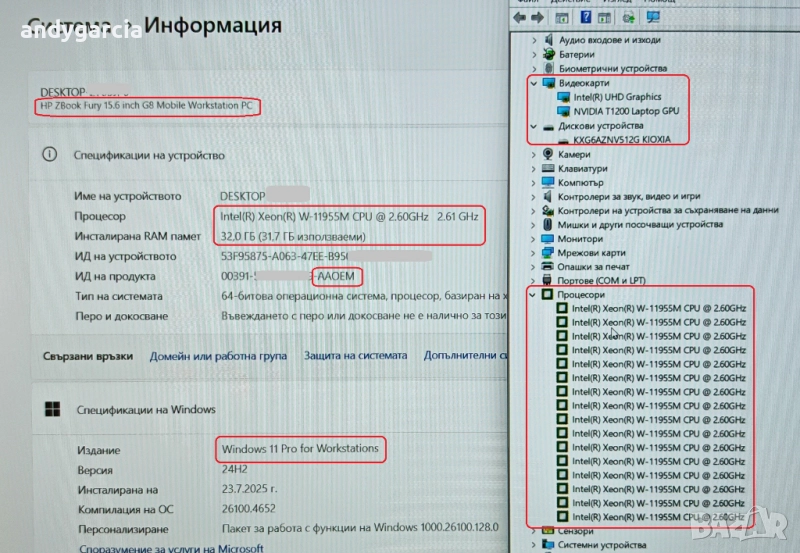 - Лицензиран Windows 11 Pro за WorkStation закупен заедно с лаптопа, вграден лиценз на дъното.
