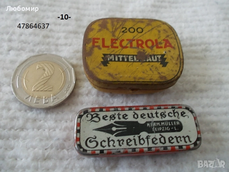 11. Старинни метални кутийки игли грамофон - 2 бр. х 5 лв.