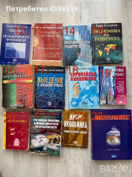 Учебниците са за УНСС предимно, но има някои и от други издателства. Някои от тях са чисто нови