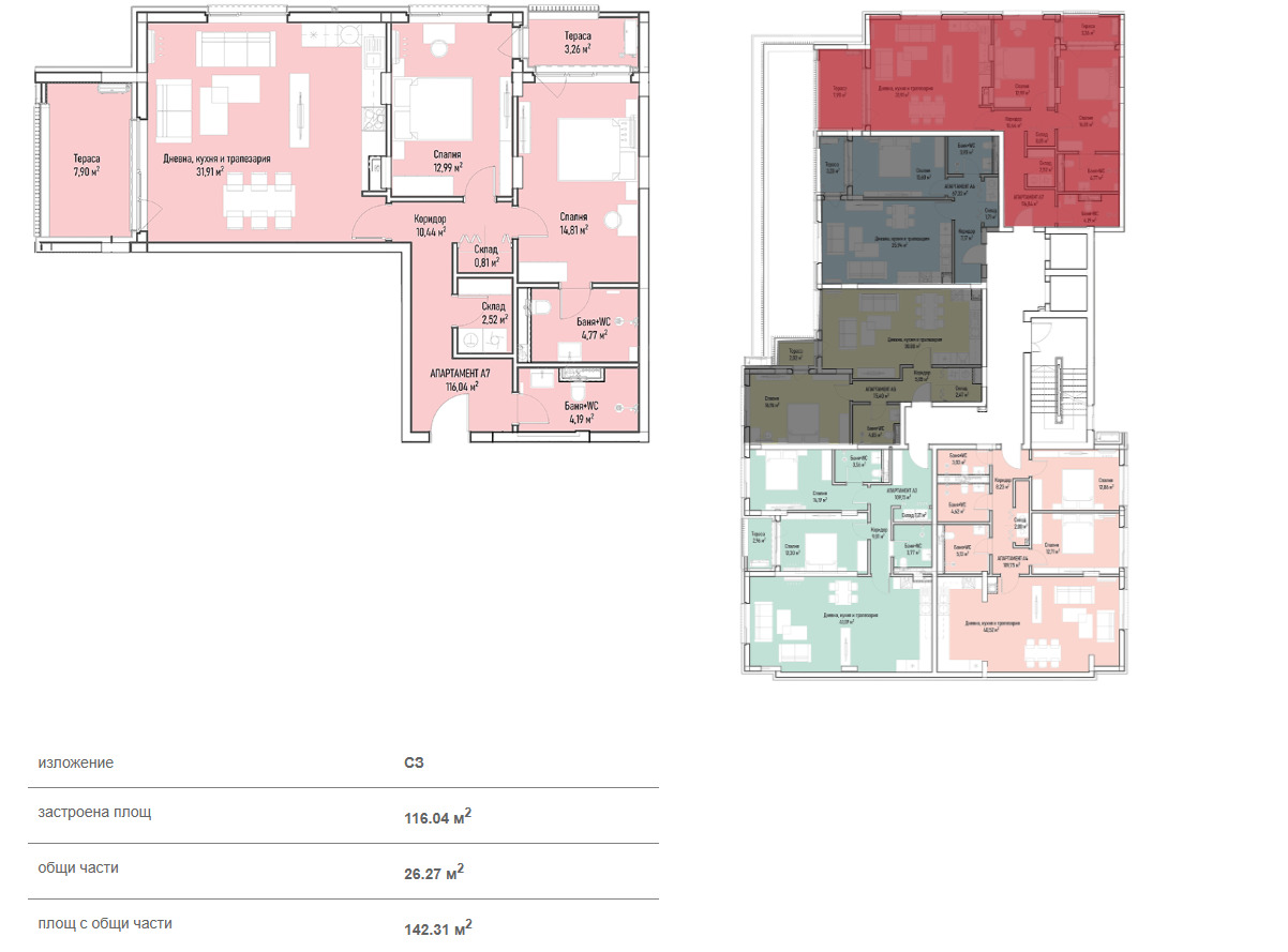 Обща площ: 142.31 кв.м.,