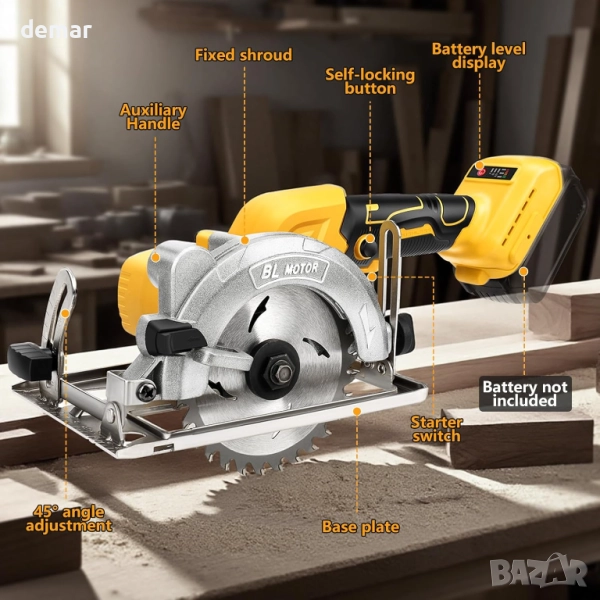 12,5 см Акумулаторен циркуляр, съвместим с батерия Dewalt 20V, 3 диска, 9500 об/мин - без батерия