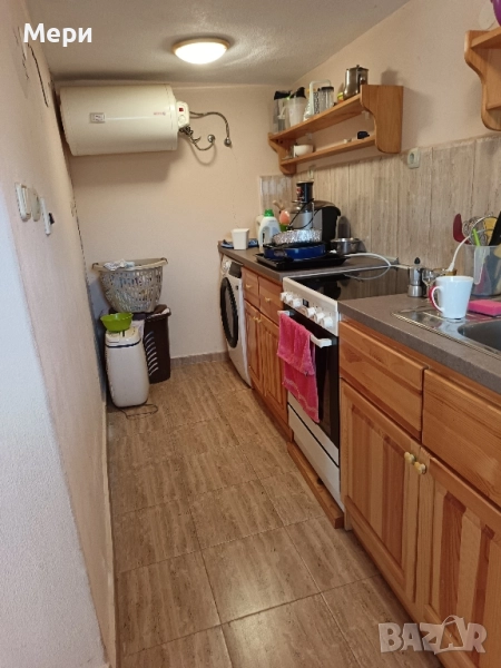 В долната част има коридор, всекидневна, кухня и мазе.