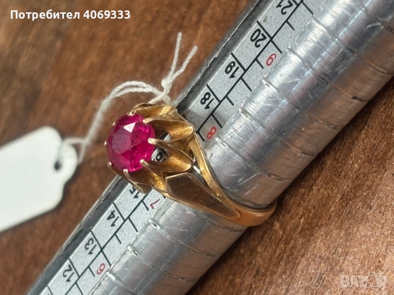 Красив златен Руски пръстен с корунд Рубин 56р-р