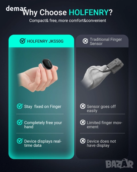 HOLFENRY Bluetooth монитор за SpO2, пулс и перфузионен индекс
