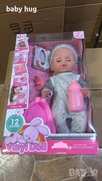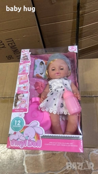 Говорещи бебета кукли 33 см – реалистична игра и българска реч. 12 звука и думи на български – куклата се смее, плаче, казва „мамо“ и други.