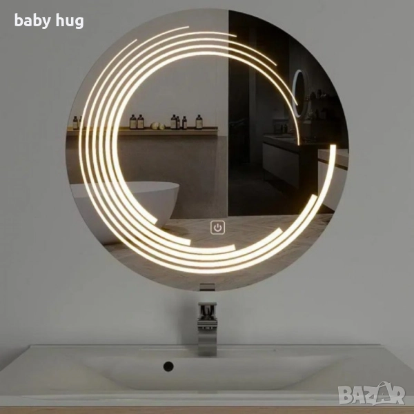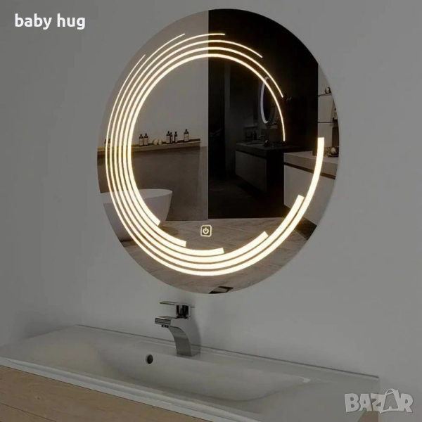 Светещо дизайнерско LED огледало с анти-мъгла и тъч управление. Размер: 80 × 80 см.