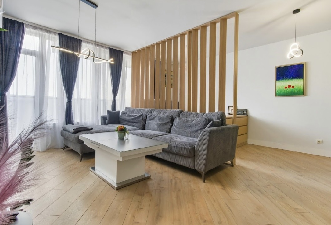 Просторна и светла всекидневна с кухненски бокс и обособен кът за отдих