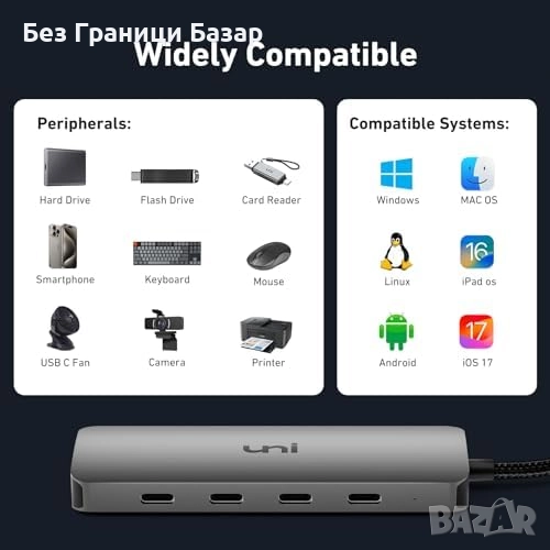 Съвместим с MacBook Pro/Air, iPad Pro, Surface, Thunderbolt и други