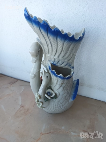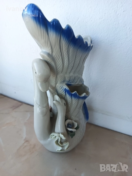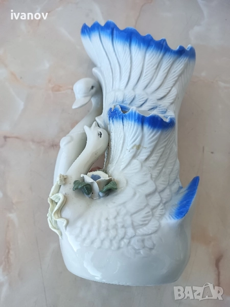Порцеланова ваза с лебеди без забележки. Височина- 29 см.