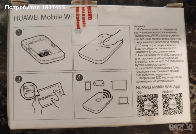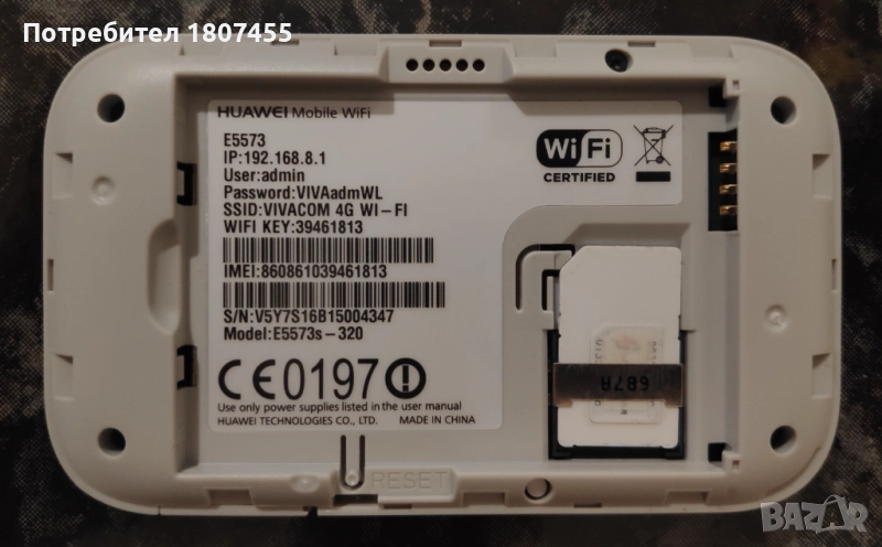 4G/LTE Бисквитка за мобилен интернет Huawei E5573 Vivacom, снимка 1 - Друга електроника - 51737102 4G/LTE Бисквитка за мобилен интернет Huawei E5573 Vivacom, снимка 2 - Друга електроника - 51737102 4G/LTE Бисквитка за мобилен интернет Huawei E5573 Vivacom, снимка 3 - Друга електроника - 51737102 4G/LTE Бисквитка за мобилен интернет Huawei E5573 Vivacom, снимка 4 - Друга електроника - 51737102 4G/LTE Бисквитка за мобилен интернет Huawei E5573 Vivacom, снимка 5 - Друга електроника - 51737102 4G/LTE Бисквитка за мобилен интернет Huawei E5573 Vivacom, снимка 6 - Друга електроника - 51737102 4G/LTE Бисквитка за мобилен интернет Huawei E5573 Vivacom, снимка 7 - Друга електроника - 51737102 4G/LTE Бисквитка за мобилен интернет Huawei E5573 Vivacom, снимка 8 - Друга електроника - 51737102 4G/LTE Бисквитка за мобилен интернет Huawei E5573 Vivacom, снимка 9 - Друга електроника - 51737102 4G/LTE Бисквитка за мобилен интернет Huawei E5573 Vivacom, снимка 10 - Друга електроника - 51737102 4G/LTE Бисквитка за мобилен интернет Huawei E5573 Vivacom, снимка 11 - Друга електроника - 51737102 4G/LTE Бисквитка за мобилен интернет Huawei E5573 Vivacom, снимка 12 - Друга електроника - 51737102 4G/LTE Бисквитка за мобилен интернет Huawei E5573 Vivacom, снимка 13 - Друга електроника - 51737102 4G/LTE Бисквитка за мобилен интернет Huawei E5573 Vivacom, снимка 14 - Друга електроника - 51737102 1/14