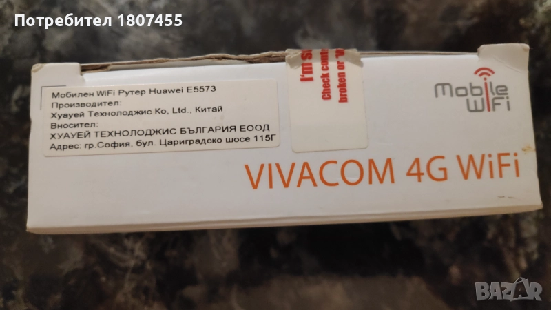 4G/LTE Бисквитка за мобилен интернет Huawei E5573 Vivacom → Обява 51737102