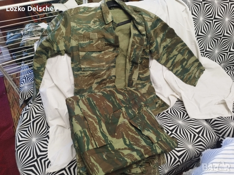 Нови ,камуфлажни ,панталони 19лв различни размери ,които са на последната снимка ,като Т-талия,Х-Ханш,L-дължина на панталона,80,%памук ,20%полиестер ,много здрав плат ,перфектна кройка ,Якета комплект с елек и качулка 69лв,ризи 17лв,дрехите са нов внос от Република Гърция от армията,изработени изцяло с гръцки материали