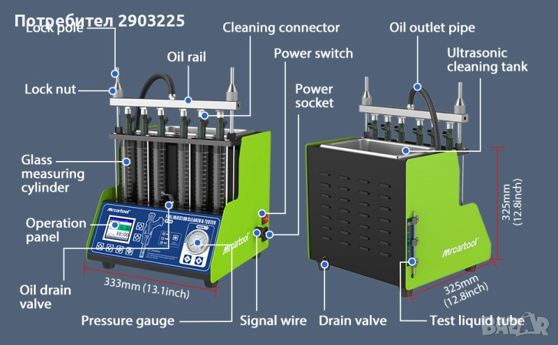 Предлага 10 режима на почистване и тестване, включително ултразвуково почистване, тестове за празен ход, тестове за течове и различни тестове за обем на впръскване при различни скорости, осигурявайки цялостна диагностика.
