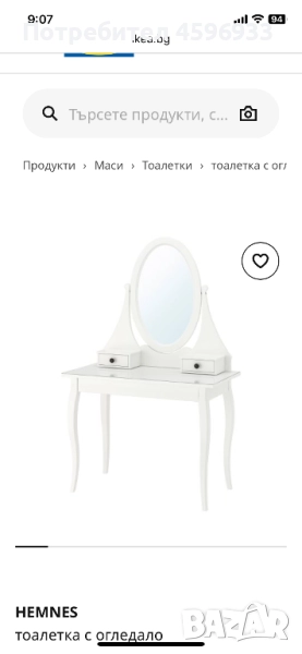 Тоалетка с огледало HEMNES и табуретка към него